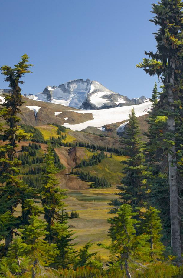 Once again the backcountry of Garibaldi Provincial Park provides beautiful foreground views with Castle Towers Mountain and Helm Glacier as a backdrop.
