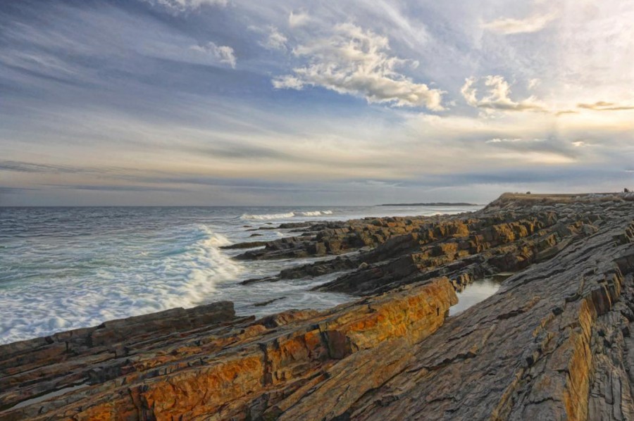 The sunsets on the south shore of Nova Scotia have a special way of lighting up the textured rock with warm glows against an ocean backdrop.
