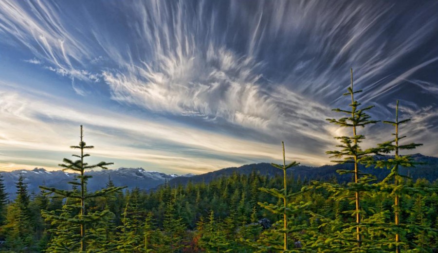 As much as I expected the new growth trees on Whistler mid mountain to catch the light at sunset, the clouds that appeared at that moment were a complete surprise that left me truly amazed.